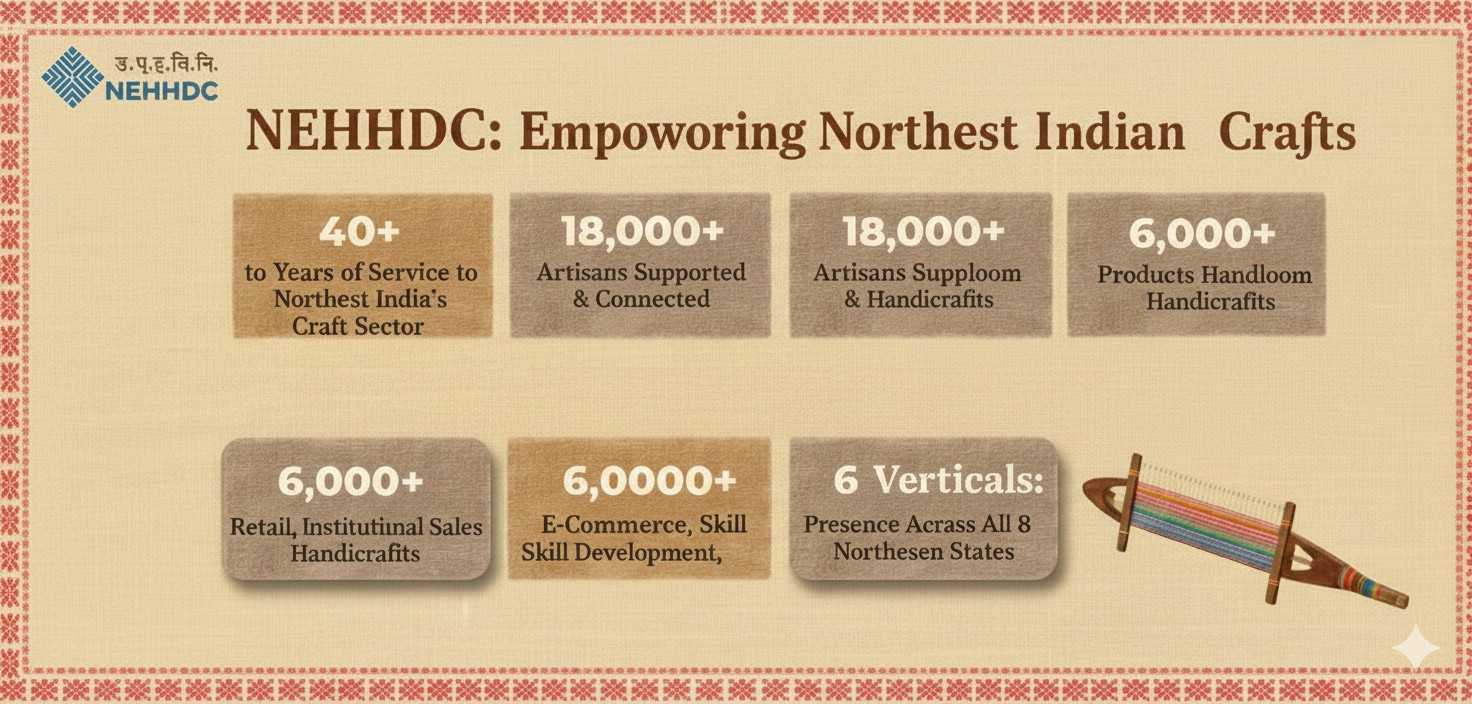 Founded to support the artisans and weavers of the Northeast, NEHHDC functions as the region’s premier organisation for craft promotion, product development, skill enhancement, and market facilitation. With a presence across all eight states, NEHHDC bridges traditional craftsmanship with modern opportunities through retail operations, training initiatives, technology adoption, and national-level marketing platforms.
